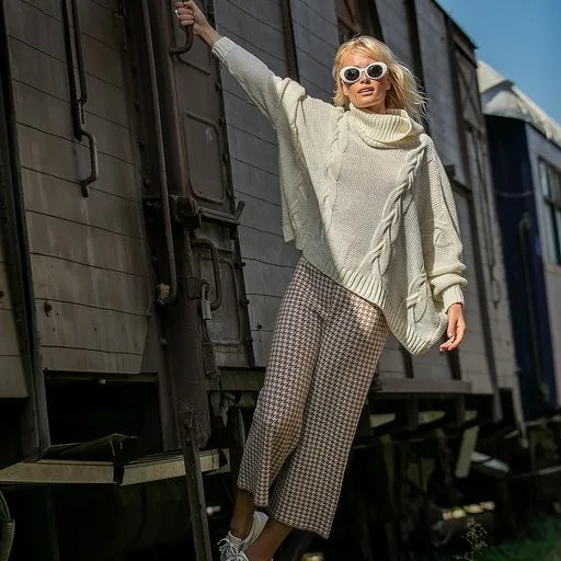 Innocent Πλεκτό ασύμμετρο με λαιμό Εκρού