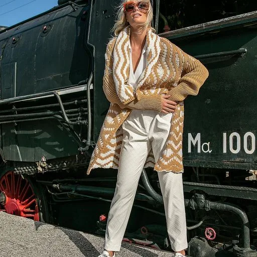 Innocent Ζακέτα Πλεκτή δίχρωμη Κάμελ
