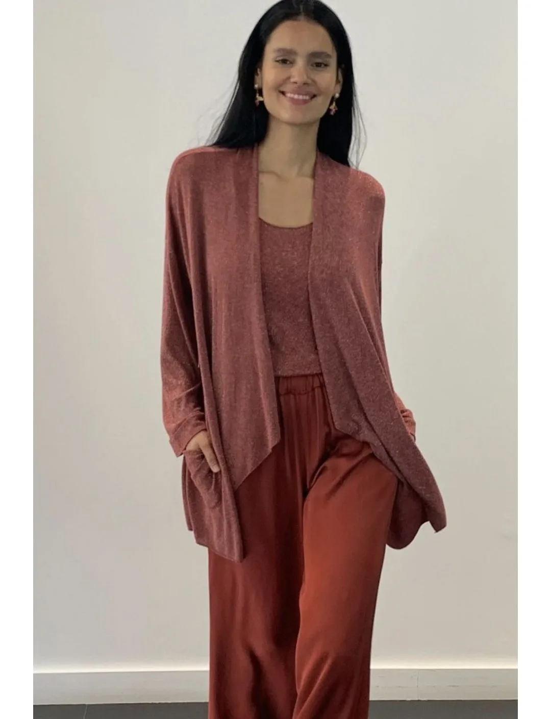 NATACHA Πλεκτή λεπτή ζακέτα λούρεξ με τσέπες