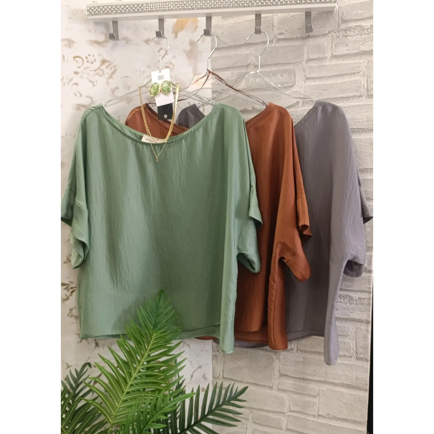 Moutaki μπλούζα σατέν 25.01.34 Λαδί, Μπλέ, Μαύρο, Πορτοκαλί
