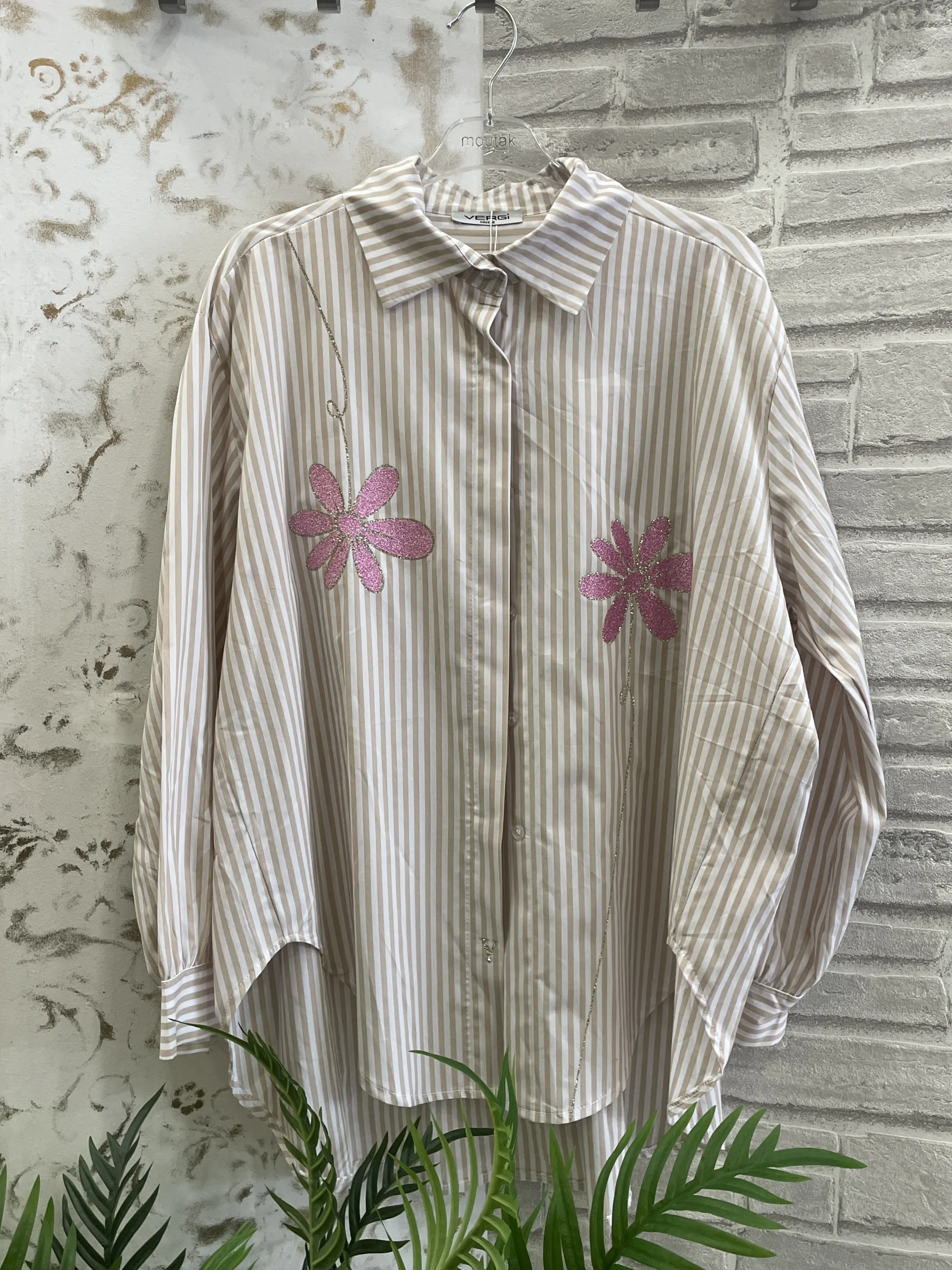 Πουκαμίσα άσπρο – μπεζ με λουλούδια