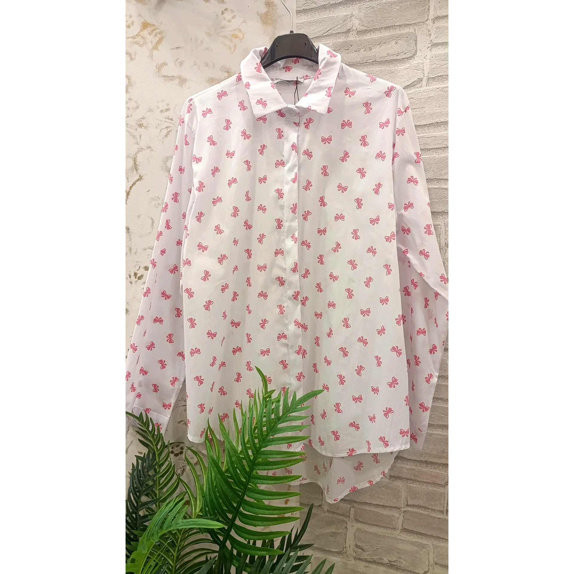 Πουκάμισο ασύμμετρο 70% βαμβάκι. Μακρύ μανίκι. Με φιογκακια