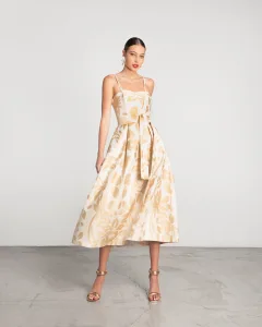 Moutaki 25.07.51 Φόρεμα Floral Gold Χρυσό Μπροκάρ